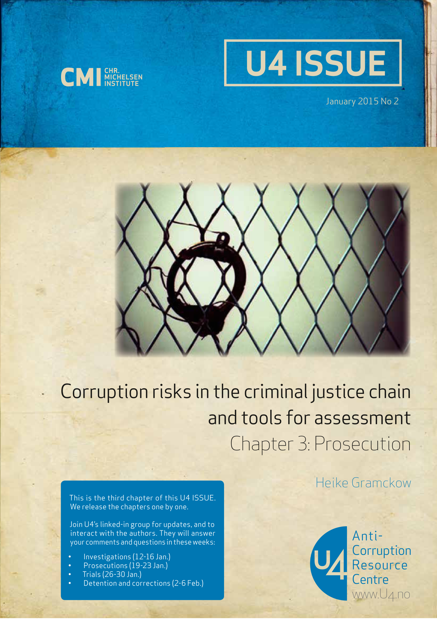 Join U4’s linked-in group for updates, and to interact with the authors. They will respond to your comments and questions in these weeks: