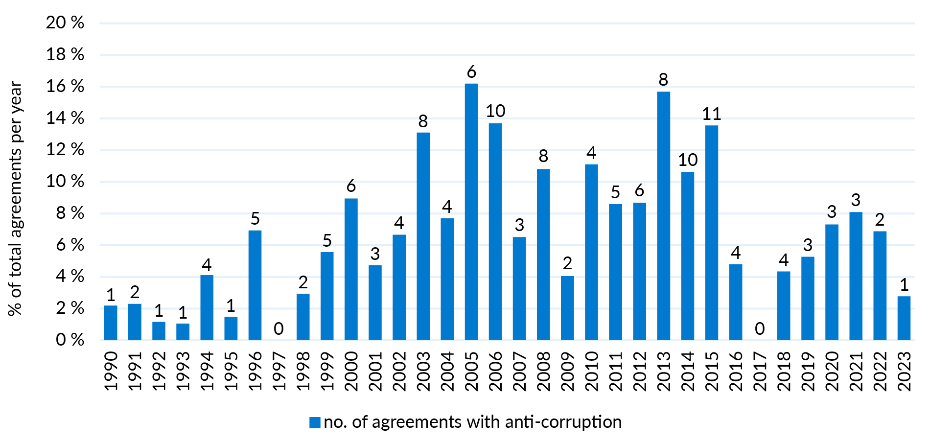 Figure 1: Percentage of agreements containing anti-corruption provisions per year