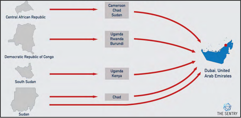 Figure 3: High-risk gold flows to Dubai from Great Lakes region