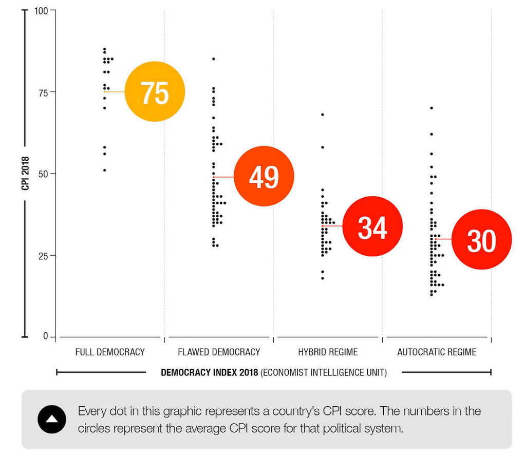 Transparency International’s Corruption Perceptions Index 2018 also showed “a disturbing link between corruption and the health of democracies, where countries with higher rates of corruption also have weaker democratic institutions and political rights”. It revealed that the continued failure by most countries to significantly control corruption was a contributing factor to the crisis in democracy worldwide (Transparency International 2019).