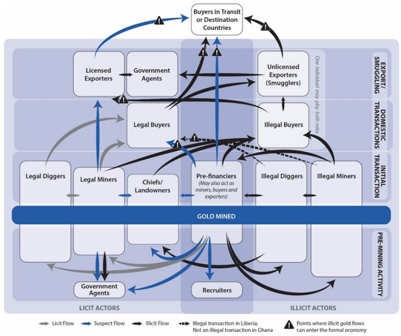 Figure 1: Financial flows related to artisanal and small-scale gold mining in Ghana and Liberia: