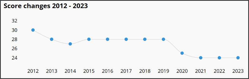 Figure 2: CPI score changes for Lebanon (2012-2023).