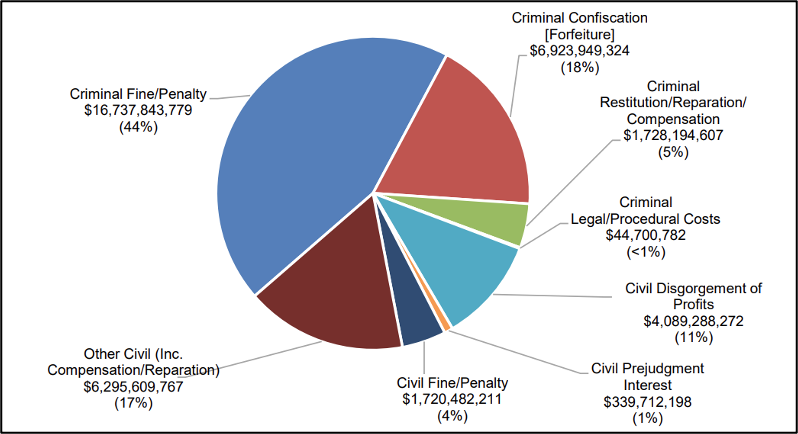 A 2021 study from UNODC estimated the breakdown of monetary sanctions imposed as part of settlements between 1999 and 2021, reflecting a diversity of different legal routes (see Figure 2).