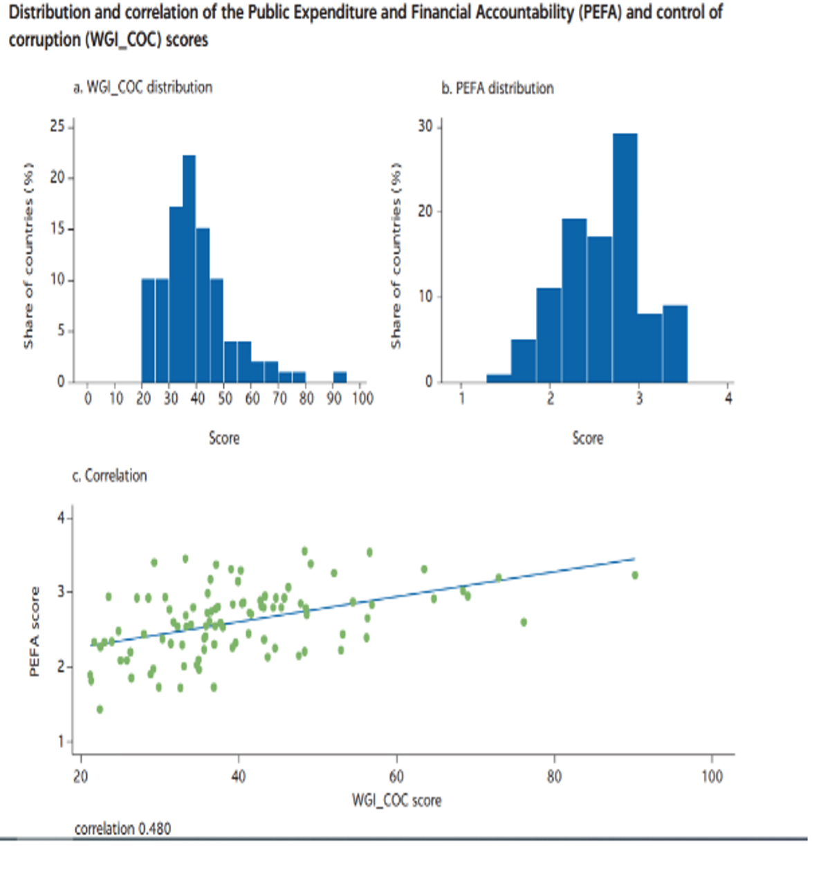 Long (2019) tested the hypothesis that countries with more transparent budget execution reporting will have lower levels of corruption, using overall PEFA scores for related indicators and WGC-COC scores in 99 countries. The results confirmed the hypothesis by showing a positive correlation (0.400) between better PEFA scores on budget execution transparency and lower perceptions of corruption (Long 2019: 102-103).