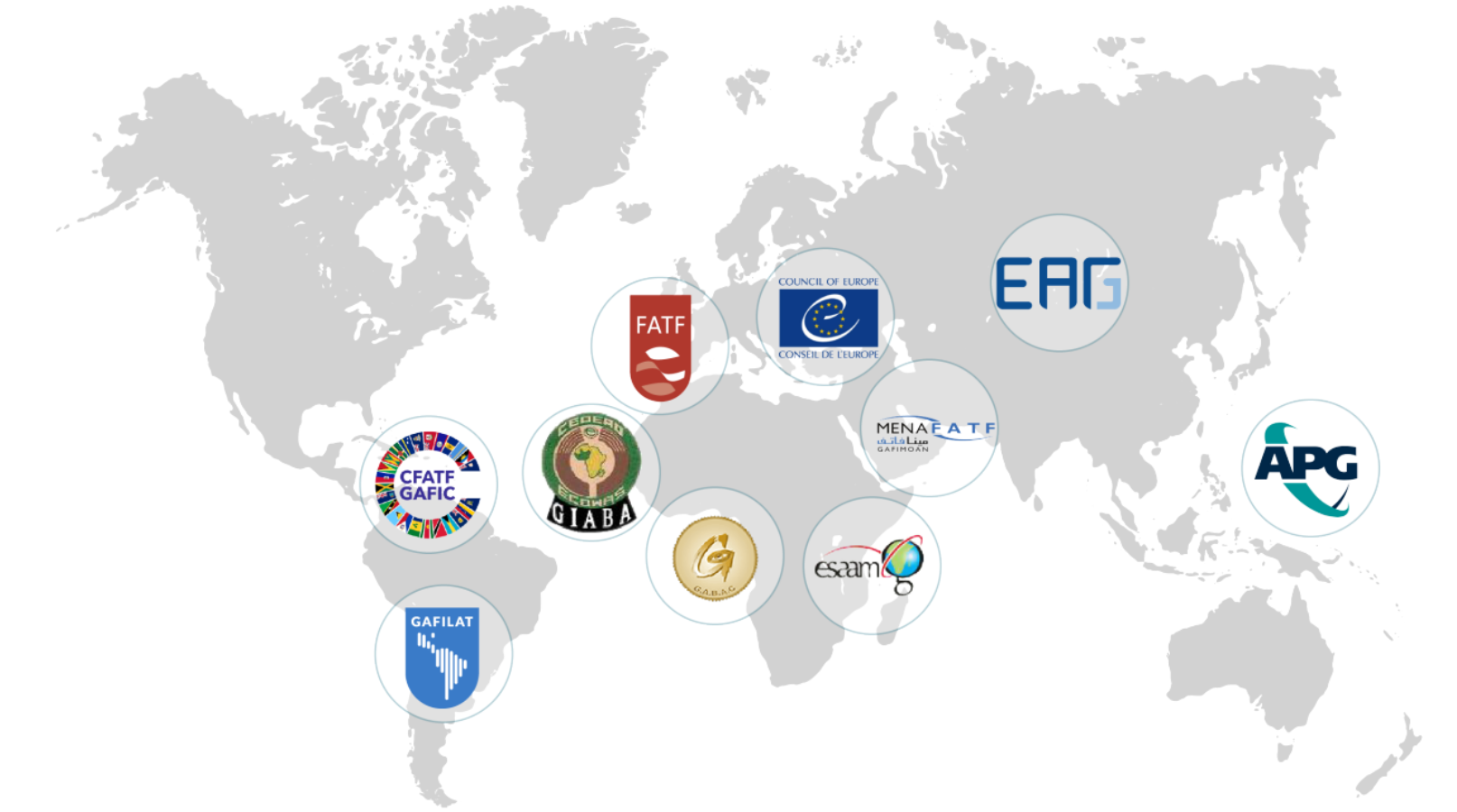 The FSRBs are the Asia/Pacific Group on Money Laundering (APG), Caribbean Financial Action Task Force (CFATF), Eurasian Group (EAG), Eastern and Southern Africa Anti-Money Laundering Group (ESAAMLG), GABAC, Financial Action Task Force of Latin America (GAFILAT), Inter Governmental Action Group against Money Laundering in West Africa (GIABA), Middle East and North Africa Financial Action Task Force (MENAFATF) and the Committee of Experts on the Evaluation of Anti-Money Laundering Measures (MONEYVAL) (FATF no date b). The FSRBs have gained stronger status and, according to the FATF, currently take part in “all FATF activities as associate members” (FATF 2014). The figure below shows the regions that each FSRB is associated with.