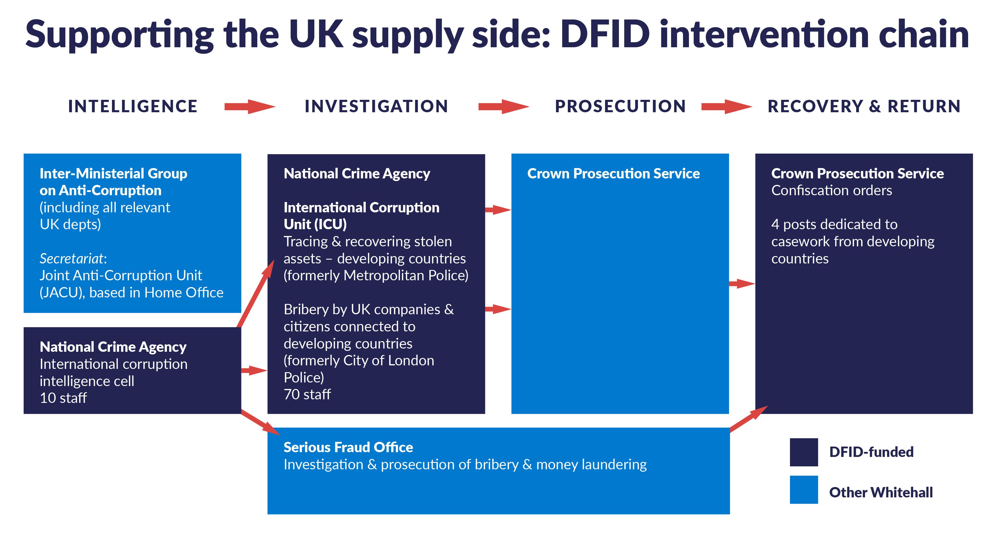 - Note that DFID observed the principle of the independence of judicial proceedings by not being involved directly in funding the prosecution stage. DFID made it clear to our law enforcement agencies that they held complete and unfettered operational autonomy over the choice of who to investigate and prosecute. This was an important safeguard against accusations that decisions on cases were ‘politically influenced’. Law enforcement independence on these matters is an important factor to maintain. DFID merely provided the tools to take action.